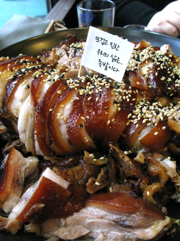 장충당에서 말하기를 앞다리가 뒷자리보다 껍질이 두툼하다고 합니다. 그래서 껍질 쪽을 좋아하는 분은 앞다리를,