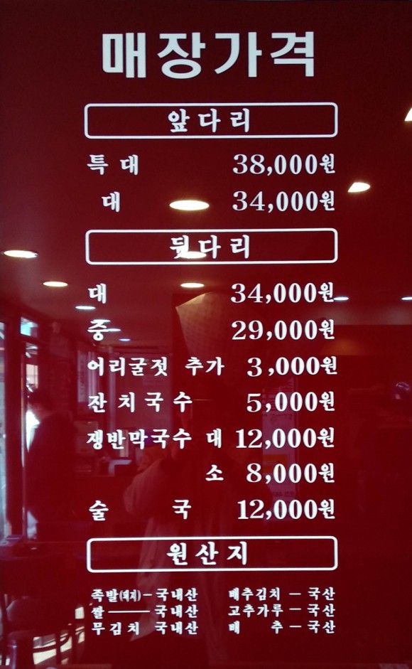 매우 단순하고 한눈에 확 들어오는 메뉴판. 앞다리와 뒷다리의 차이는 크기 차이인 줄 알았습니다만,