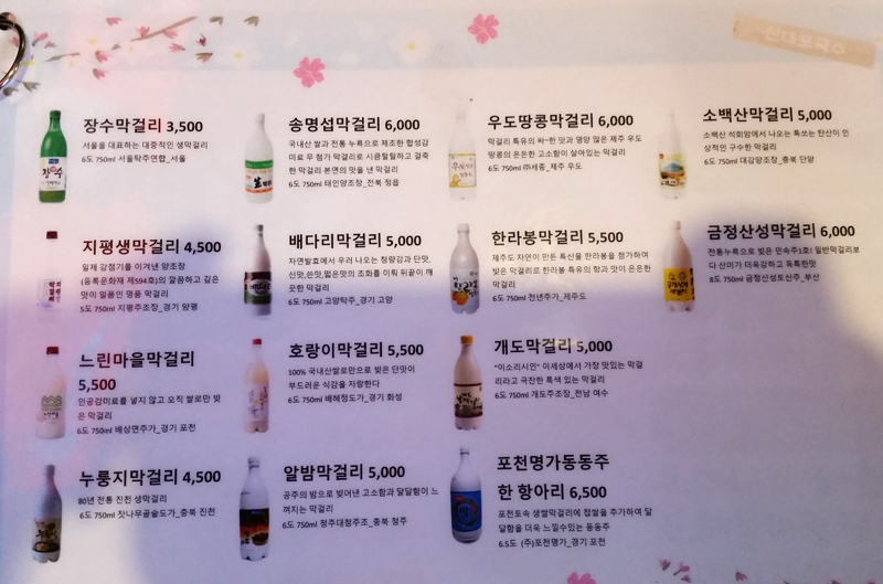 대폿집답게 다양한 막걸리가 준비되어 있습니다.