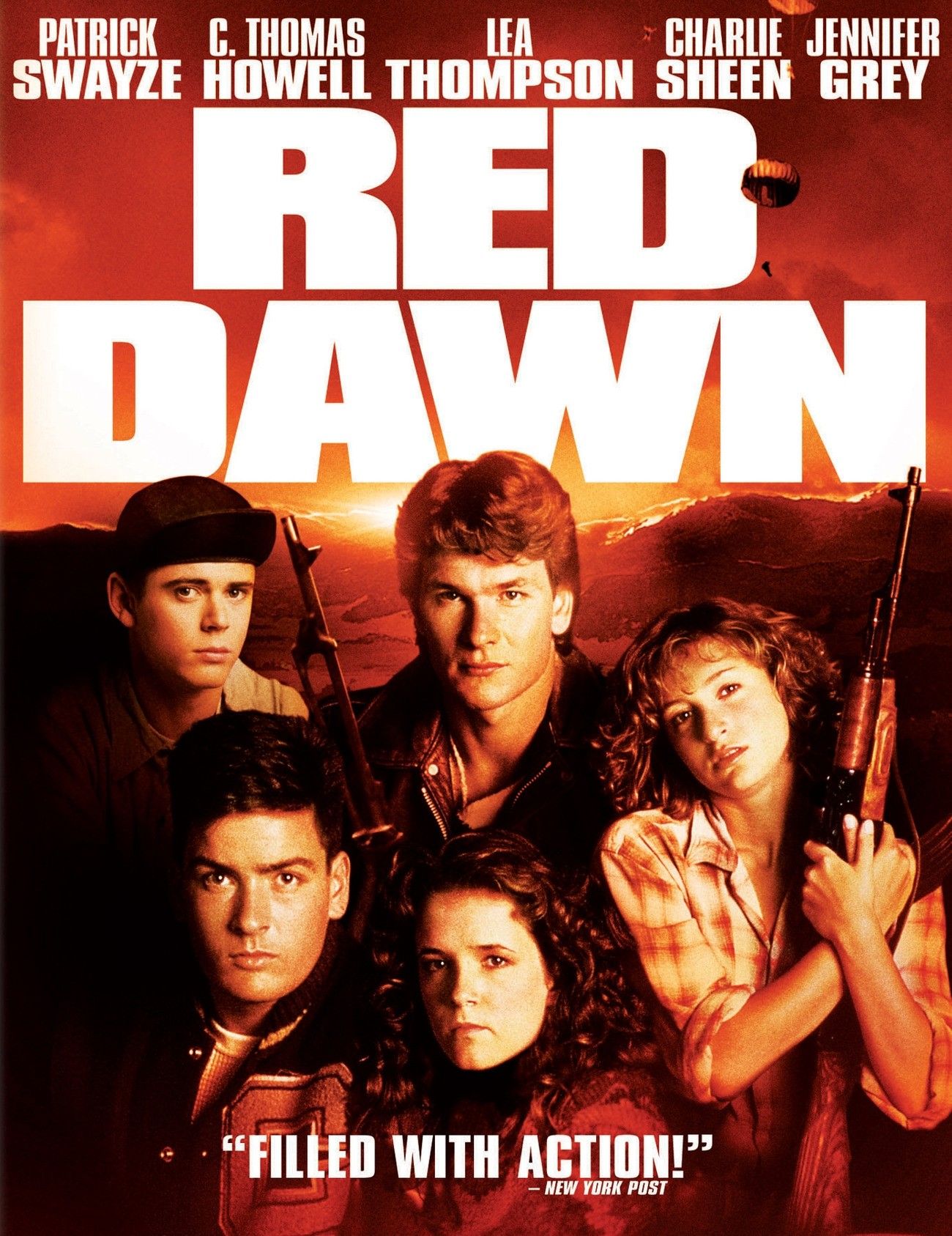 1984년 드디어 주연급으로 캐스팅되는데요, 같이 출연하는 남자 배우가 '패트릭 스웨이지'와 '토마스 하우웰'이에요. 이 둘은 영화 [아웃사이더]에서 큰형과 막내로 연기를 하였죠. 조연으로 찰리 쉰이 출연합니다. 근데 무슨 영화냐? [레드 던 Red Dawn]이라는 영화로 국내 개봉된 적은 없구요. ‘젊은 용사들’이라는 제목으로 소개가 되어 있습니다. 이 작품은 ‘코난’의 감독 존 밀리어스가 연출했습니다. 2012년 ‘토르’의 크리스 헴스워스 주연으로 내용을 좀 각색해서 같은 제목인 ‘레드 던’으로 리메이크된 적이 있습니다.