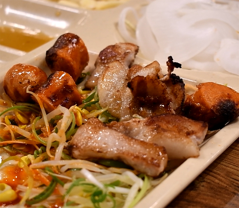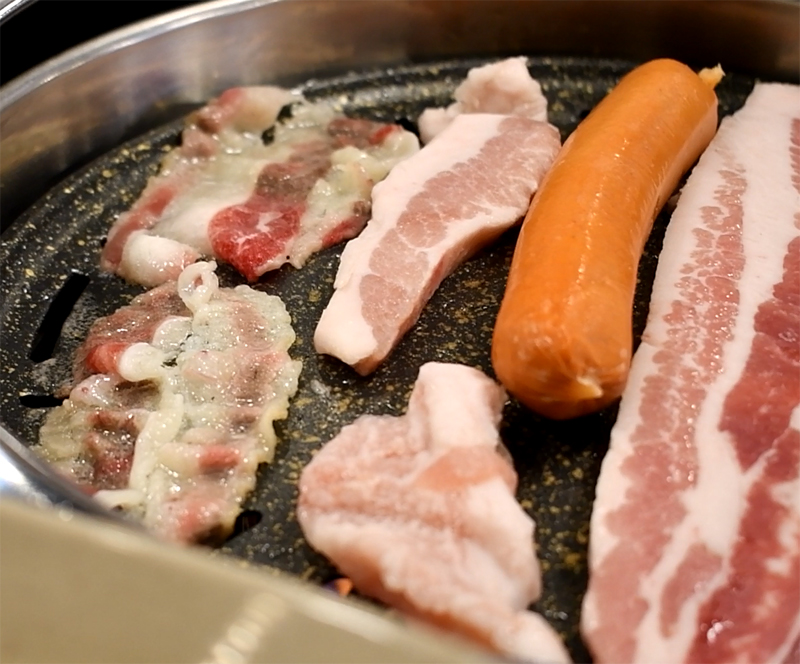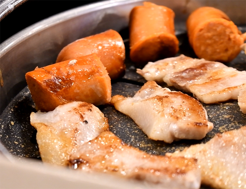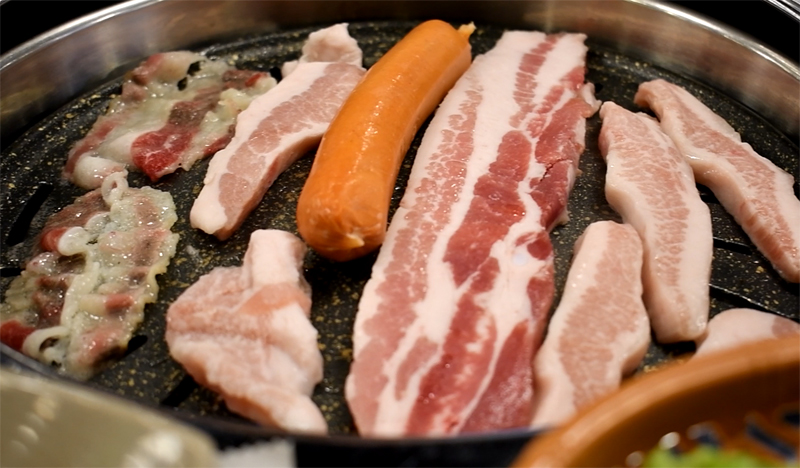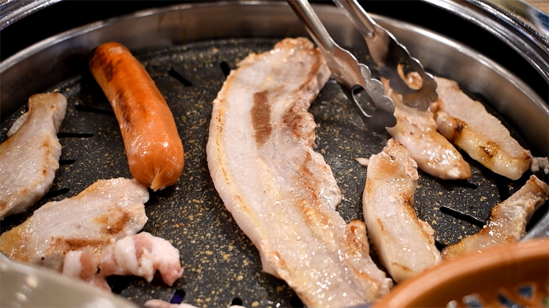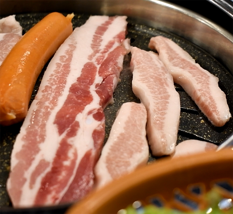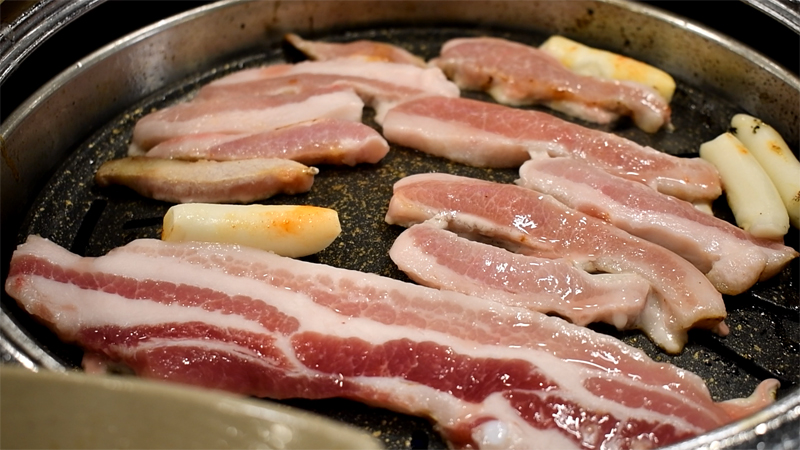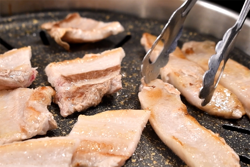 노릇노릇 잘 익어가는 삼겹살과 항정살.