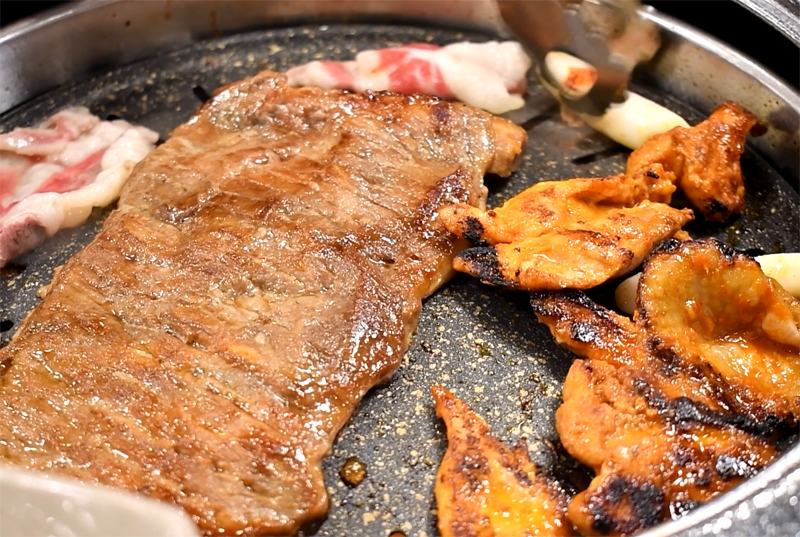 다른 고기들도 익기 시작합니다. 적당히 익혀 뒤집어줍니다.
