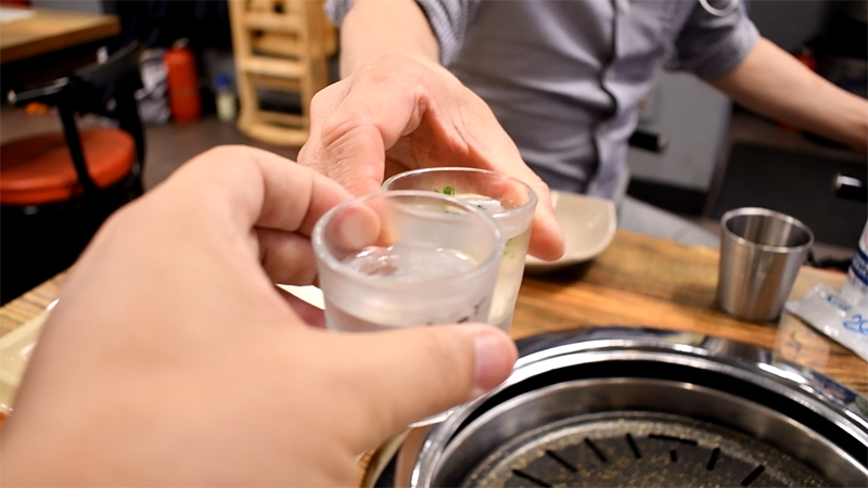 우리 아재들 만나면 소주부터 한 잔 해야지요. 짠~!