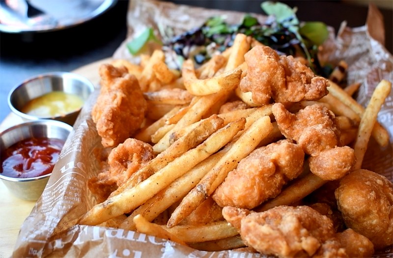 보시다시피 순살 닭고기를 밀가루인지 전문인지... 여튼 튀겨낸 닭고기와 감자 그리고 약간의 샐러드가 나오네요.