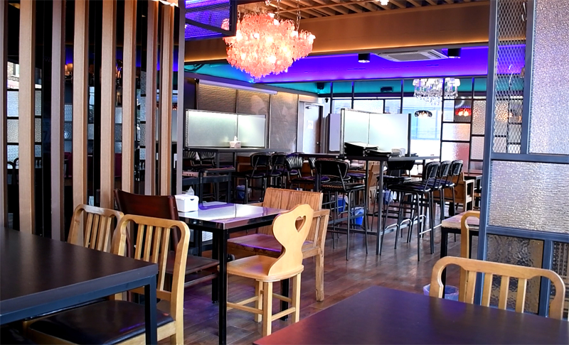 높다란 의자에 칸막이가 있는 자리도 있네요.