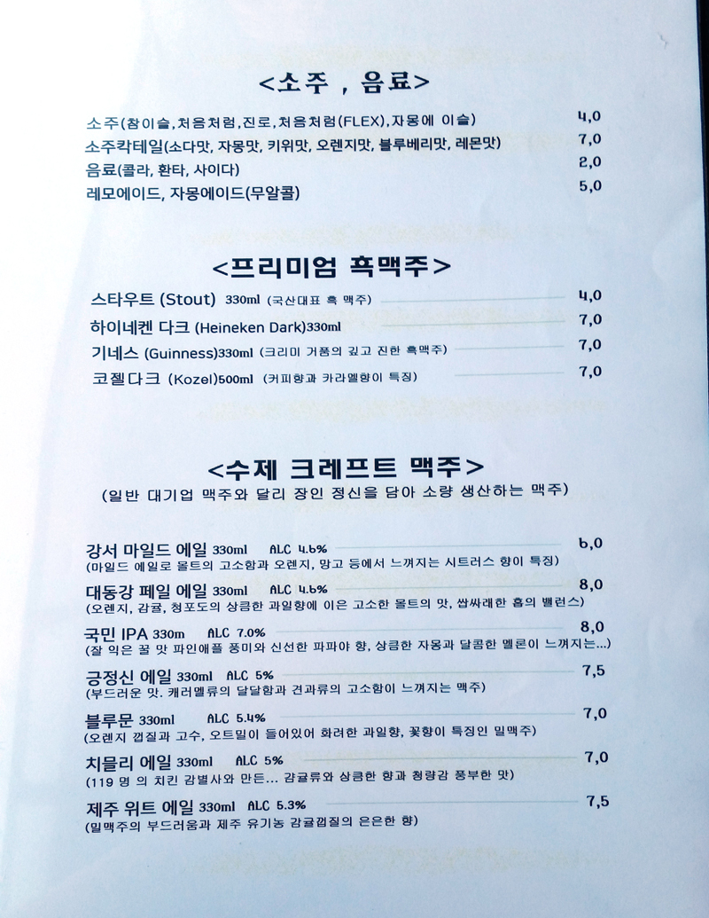 맥주도 먹고 해서 배가 불러 더 이상 다른 음식을 주문하여 먹어보지는 못했으나