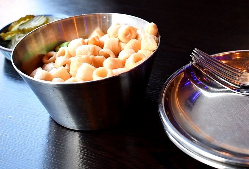 자리에 앉으니 심심풀이 마카로니를 주네요.
