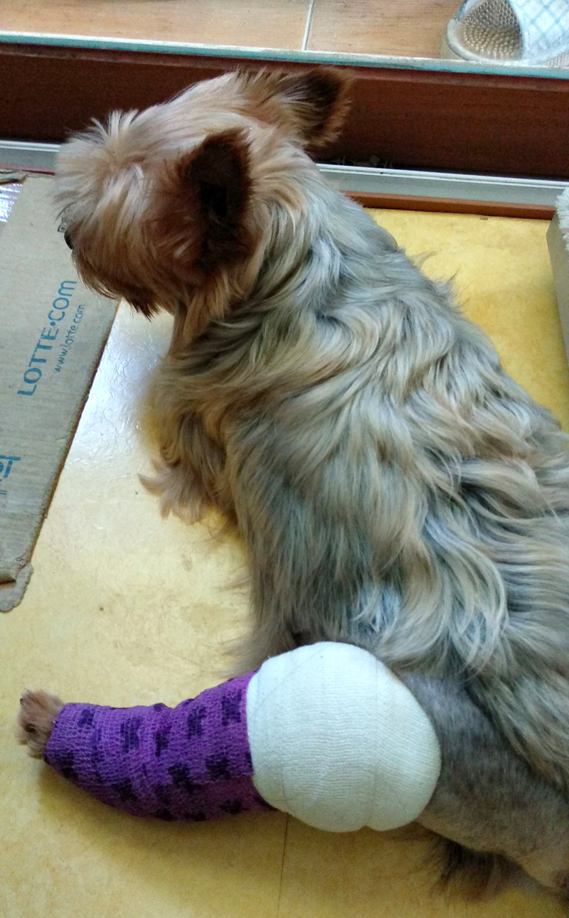 여튼 수술을 성공적인 듯합니다. 아프기 전의 활발한 모습으로 돌아와 잘 짖고 후다닥 잘 뛰어다닙니다. 아직 깁스를 푸는 일이 남아 있구요. 체중조절을 할 필요가 있어 전과는 많이 줄여서 먹이고 있습니다.