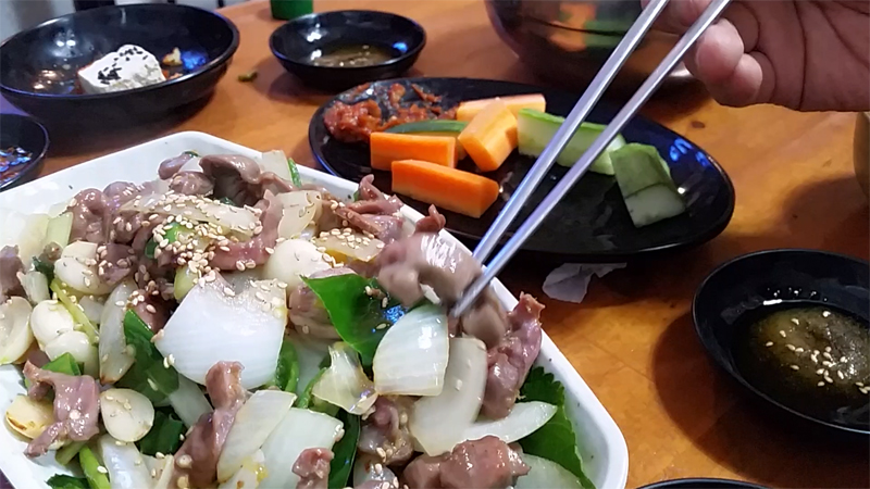 세번째 안주는 닭똥집, 모래집볶음입니다.