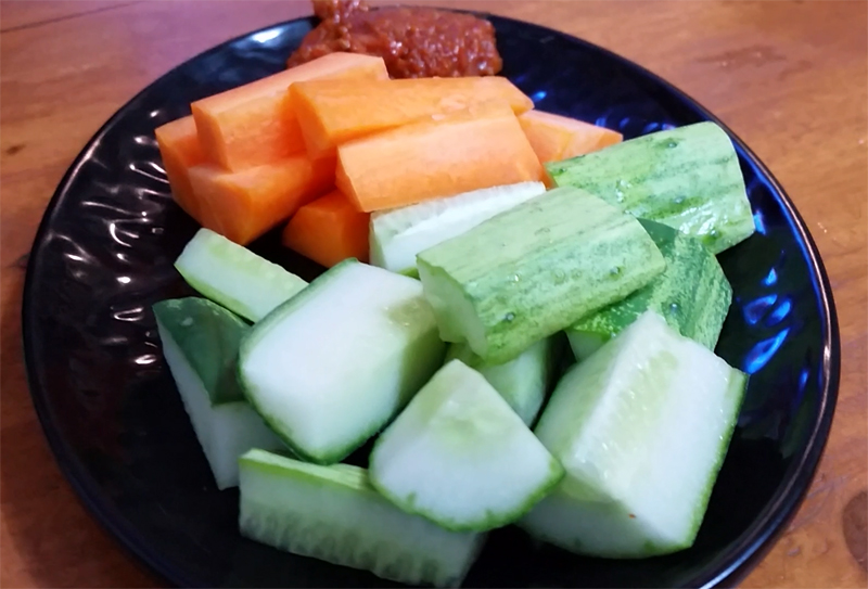 기본 안주로 오이와 당근.