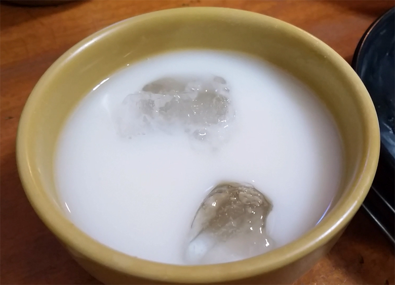 차가운 게 없다며, 술이 싱거워져 미안하지만 얼음을 사서 넣어주시더군요.
