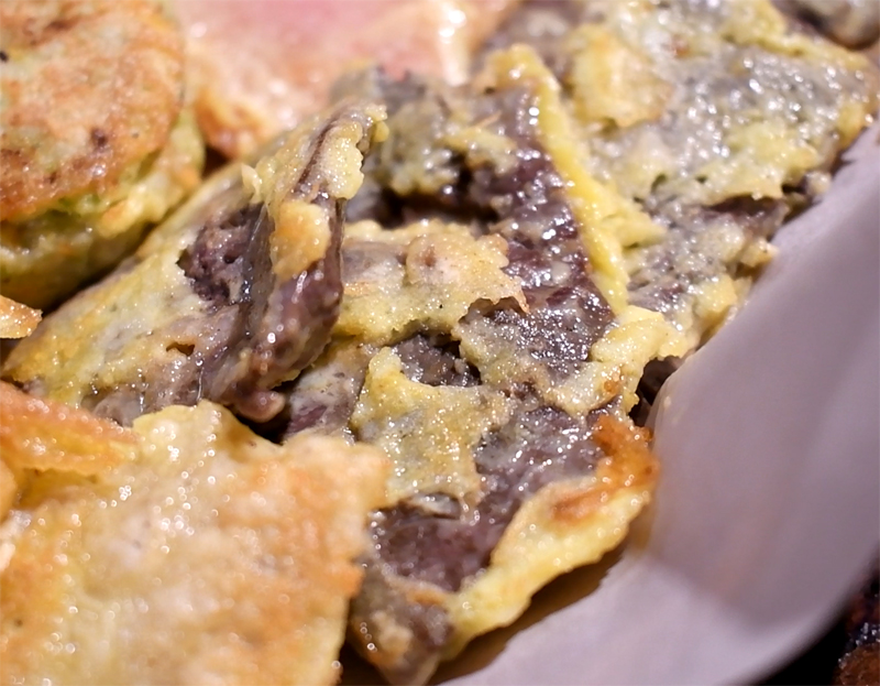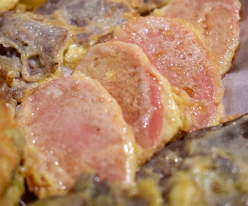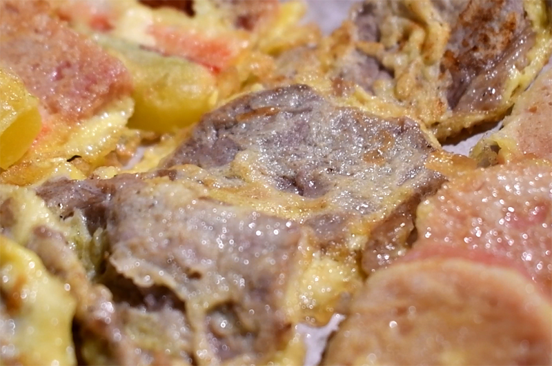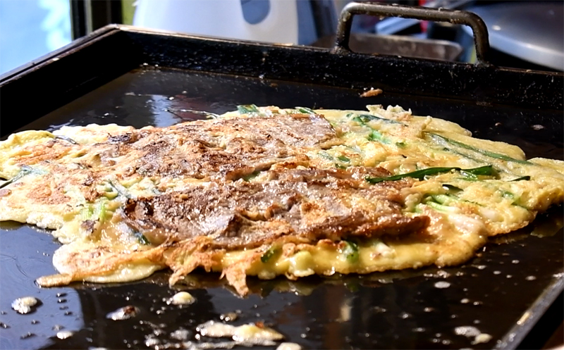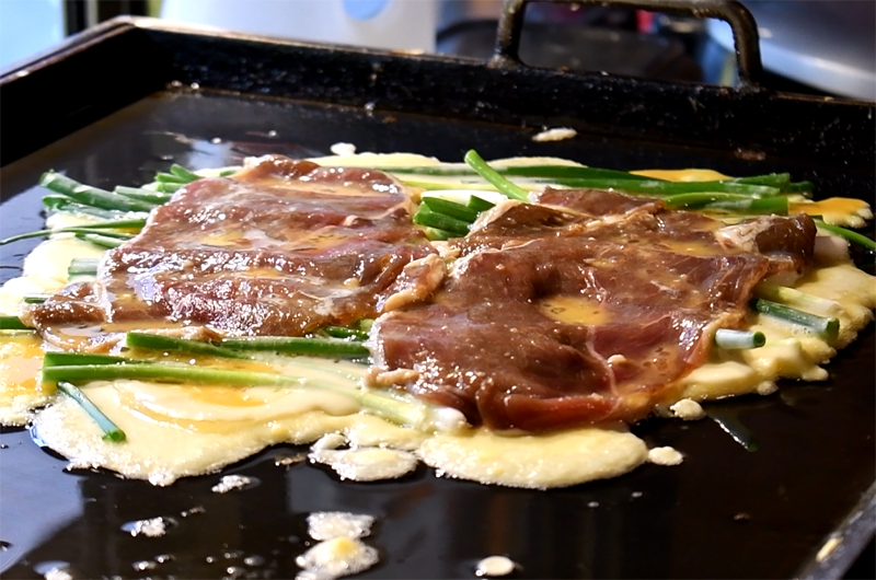 철판에서 육전이 익고 있습니다.