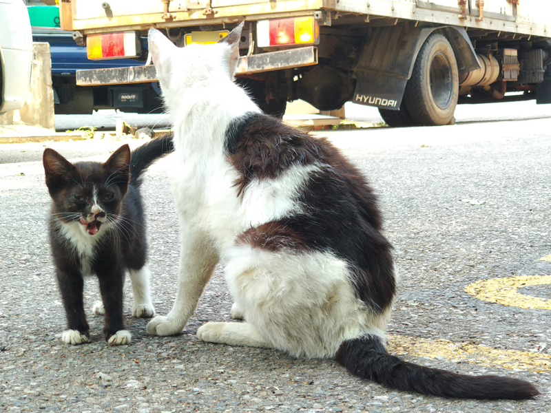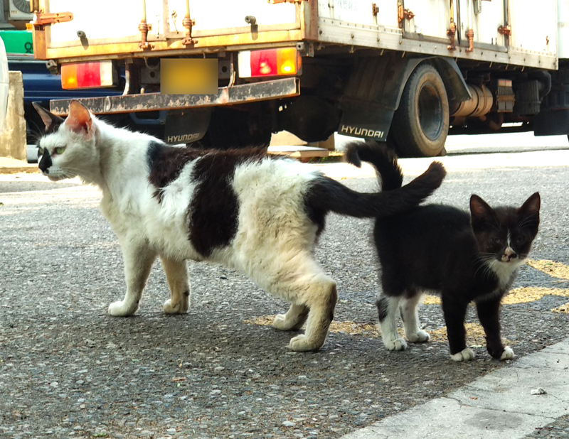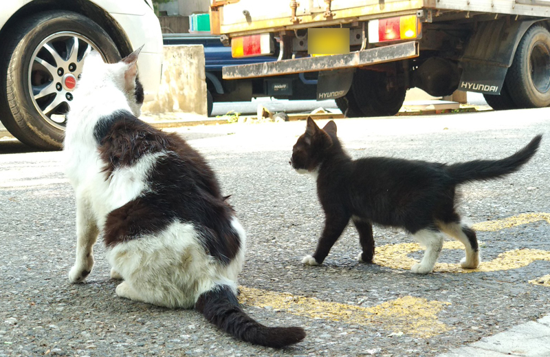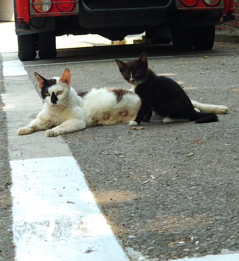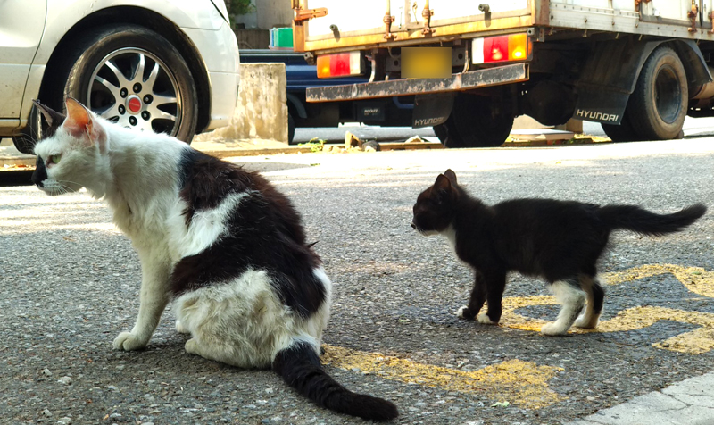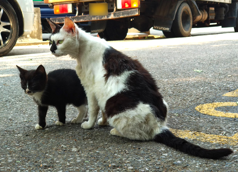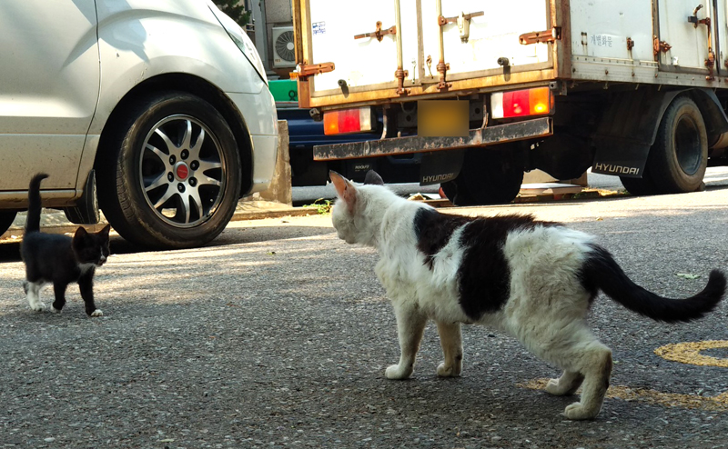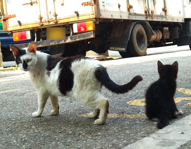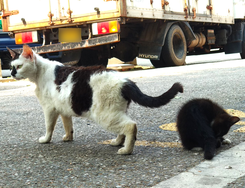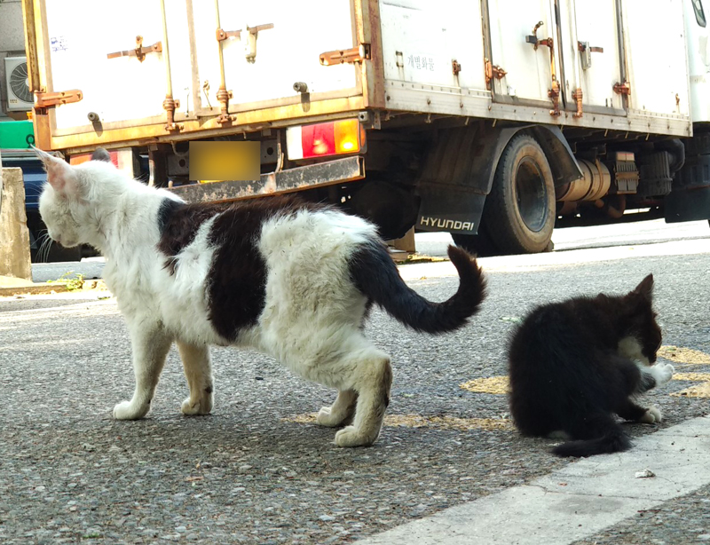 봤더니 길고양이 모자네요... 아니 '모녀'인지도 모르지만...