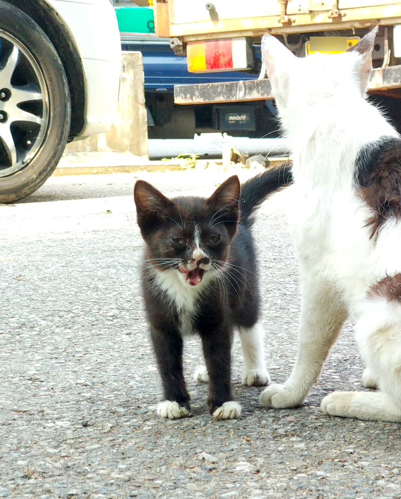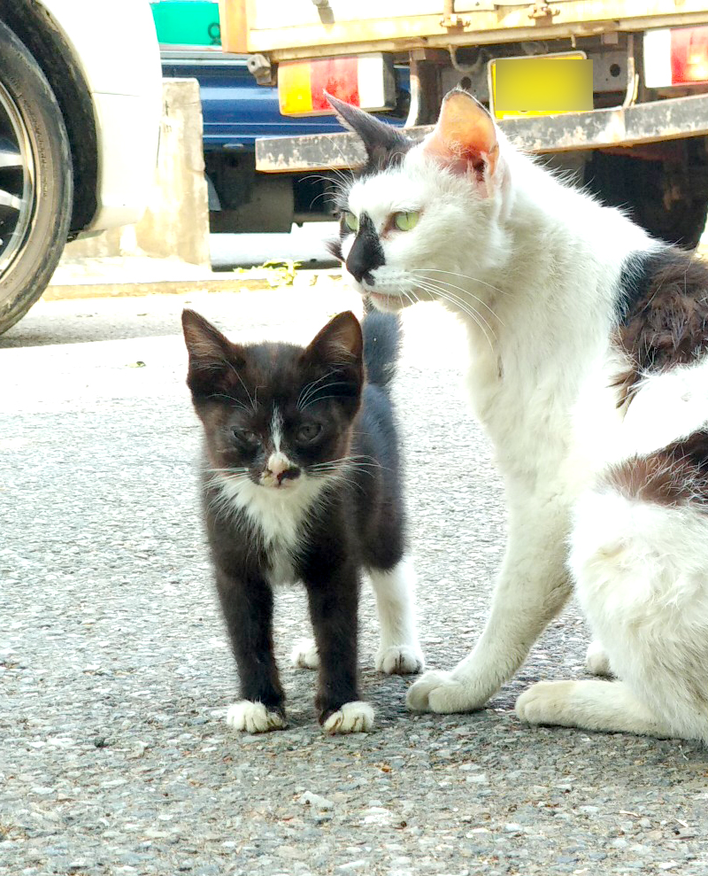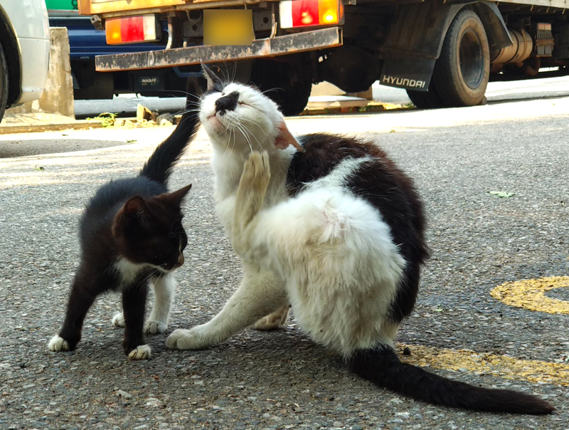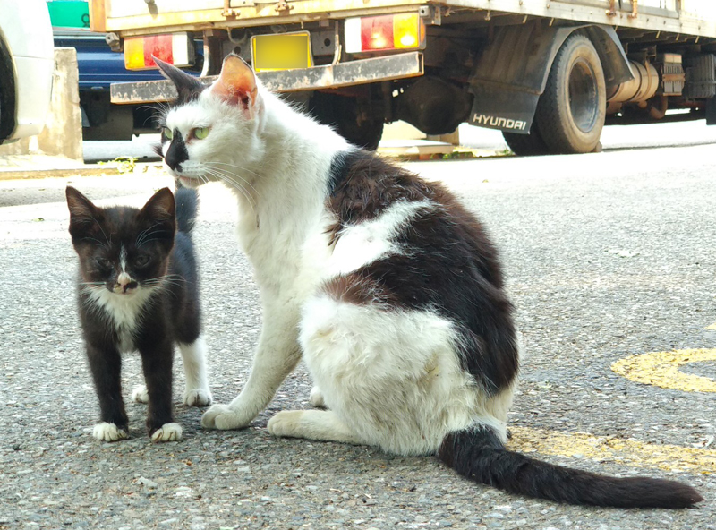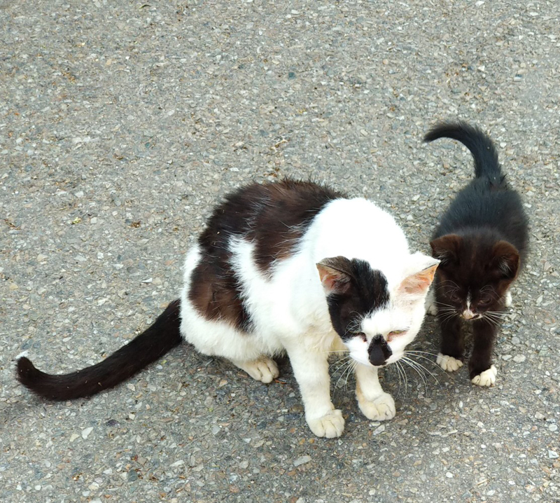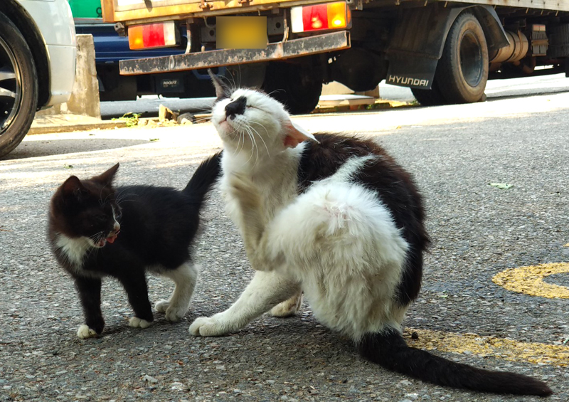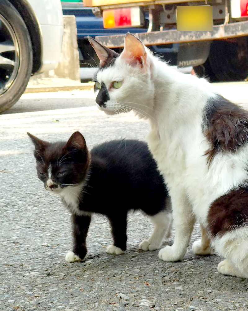 봤더니 길고양이 모자네요... 아니 '모녀'인지도 모르지만...