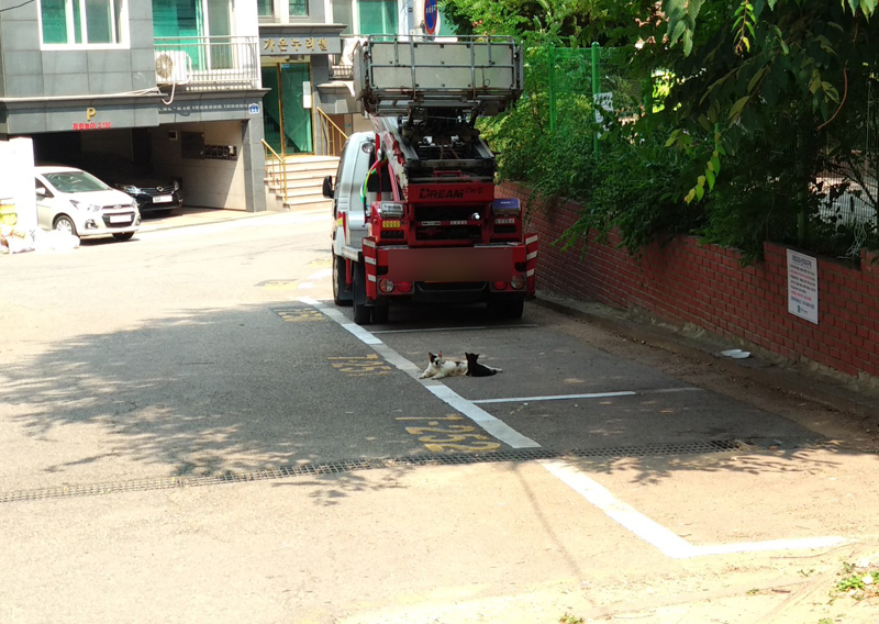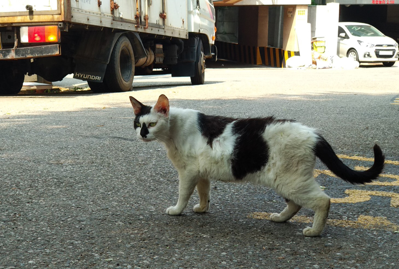 그러더니 저만치 떨어진 자동차 밑으로 도망을 가더군요.