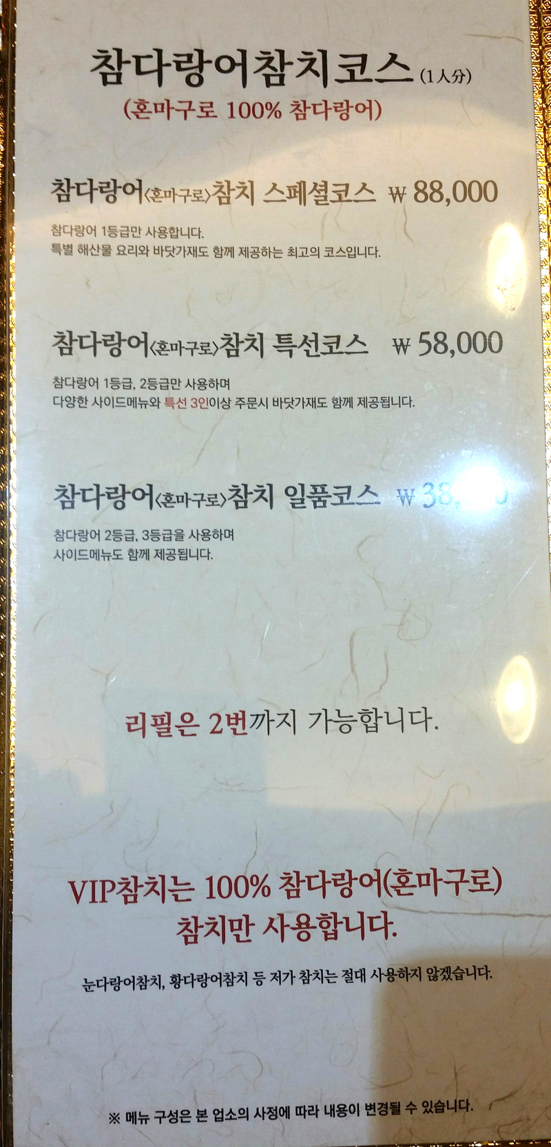 100프로 참다랑어만을 쓴다는 것을 강조하고 있는데요, 게다가 리필도 해준다는!