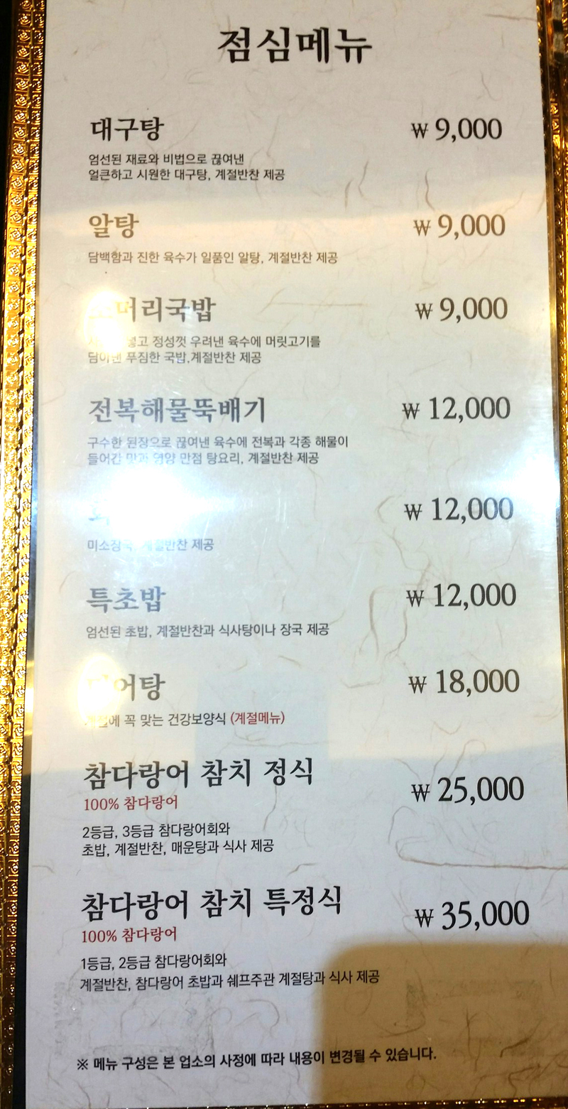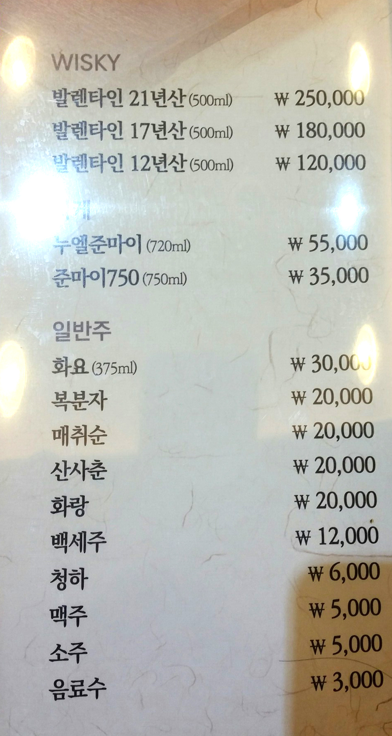 메뉴판입니다. 점심메뉴도 따로 있어 직장인 식사에도 이용하기 좋겠습니다.