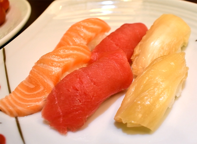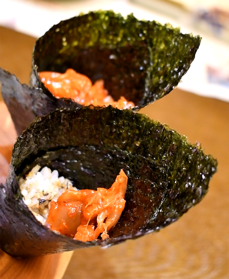 초밥이 약간 나오구요. 김치초밥이 특색 있네요. 식감 아삭했구요. 맛있습니다.