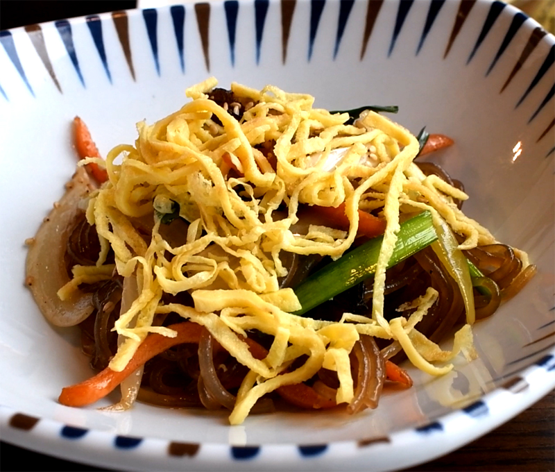 노랑노랑 계란지단이 얹어져 있는 당면 잡채.
