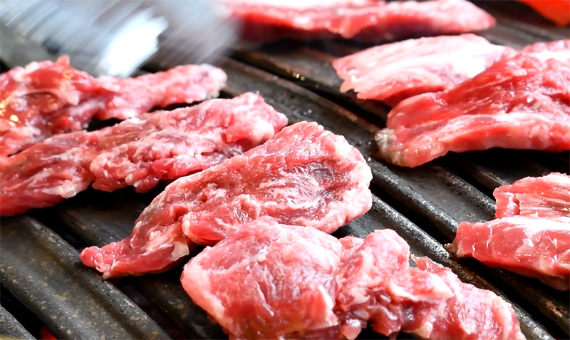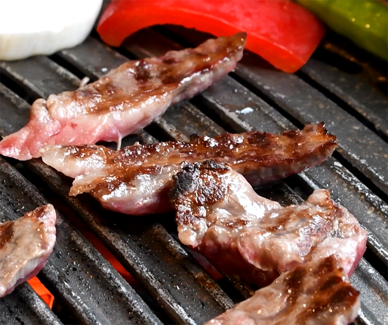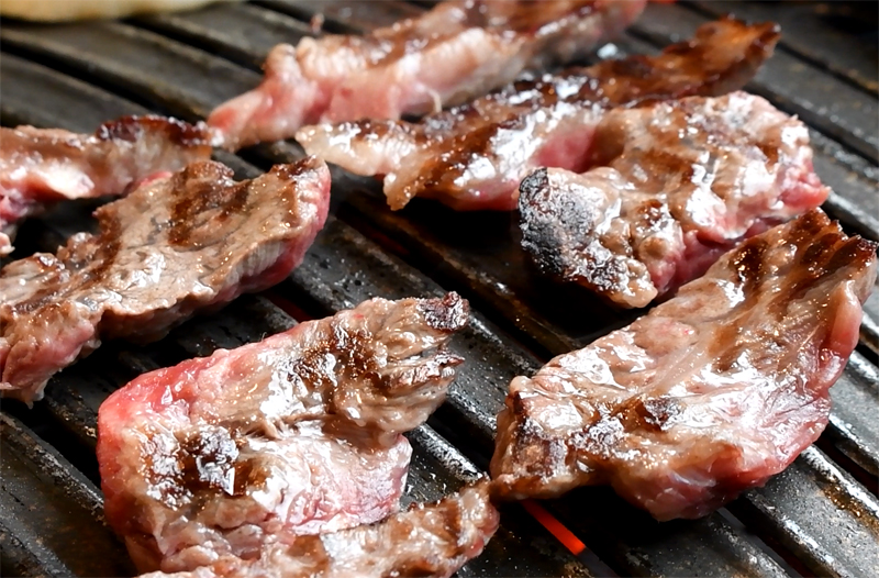 불판에 올려진 1+ 한우갈비살!