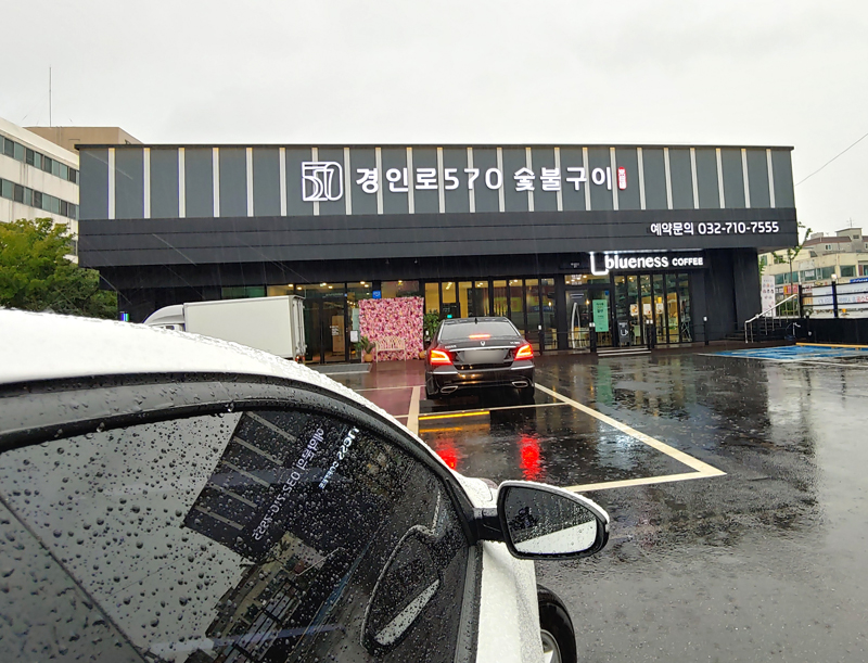 어쨌든 비가 와도 천둥이 쳐도 약속은 약속... 이니... 저 빗속을 뚫고 부천 경인로 570 숯불구이집으로 향하였습니다.