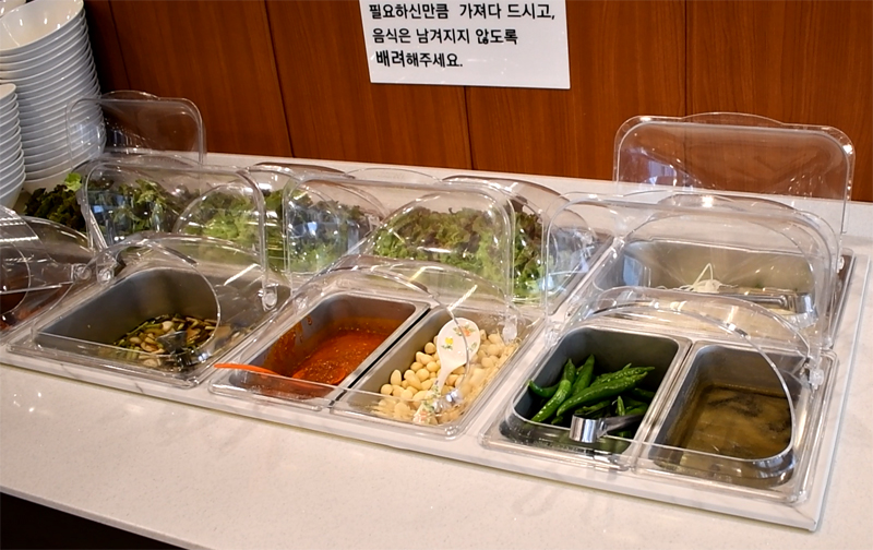 중간에 셀프바가 있어 부족한 찬이나 야채를 가져다 먹을 수 있습니다.