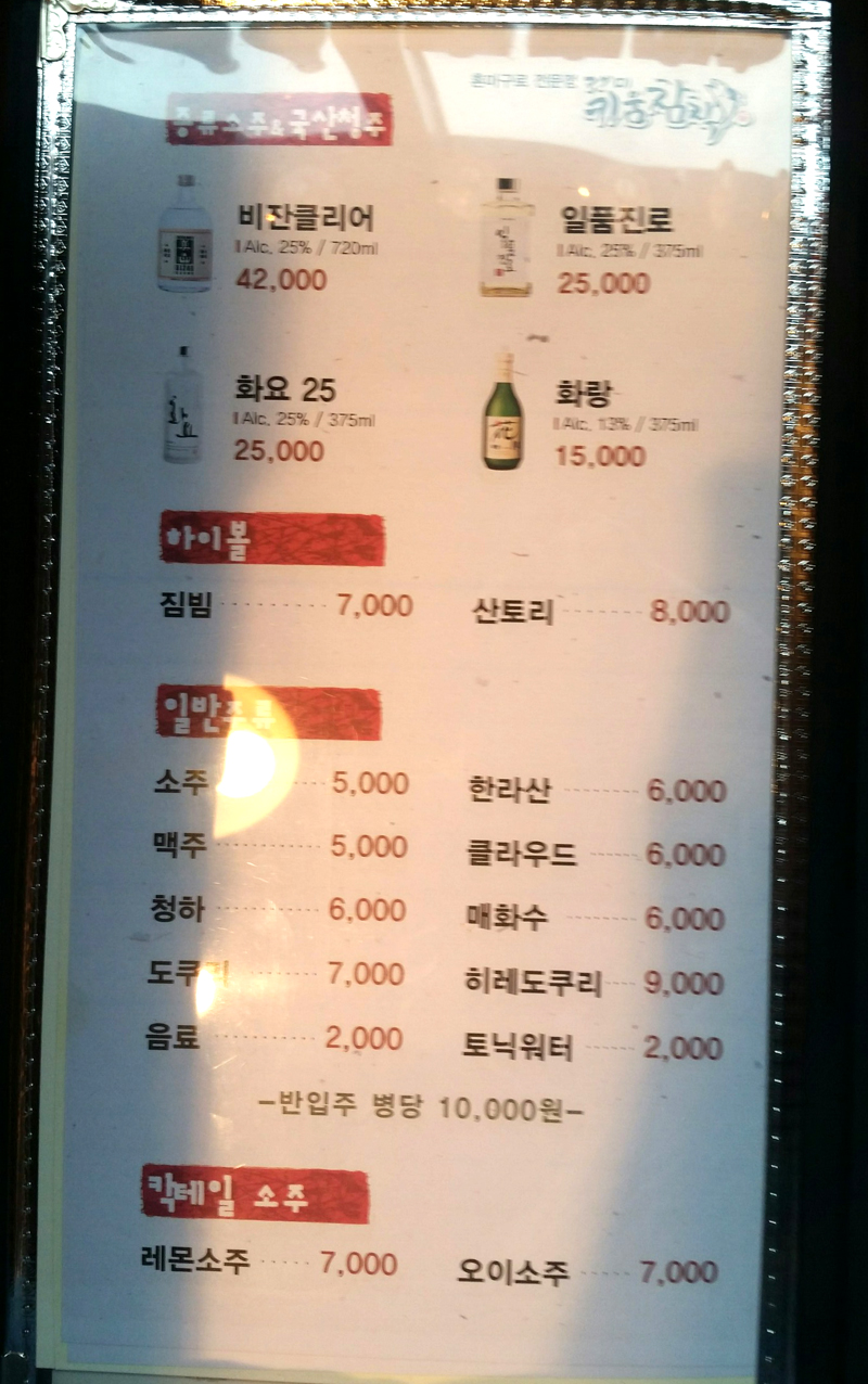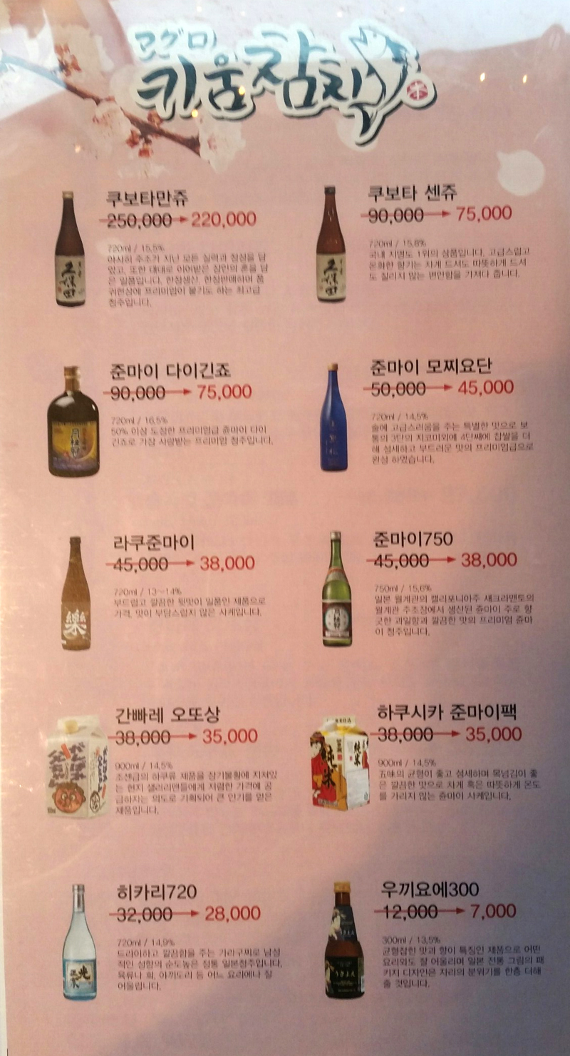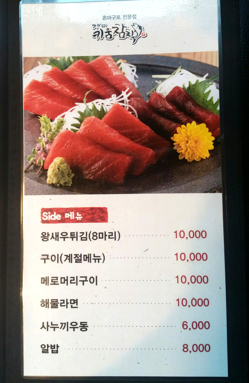 메뉴판은 상기 사진과 같으니 참고하시구요.