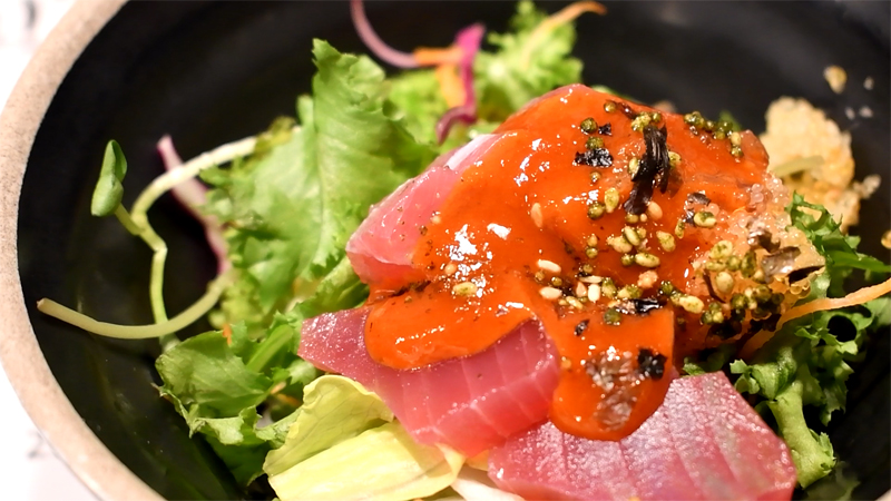 날치알과 샐러드와 함께 먹으면 여러가지 맛의 향연을 느낄 수가 있습니다.