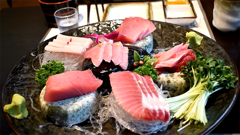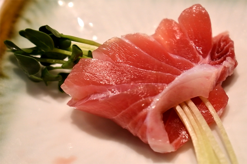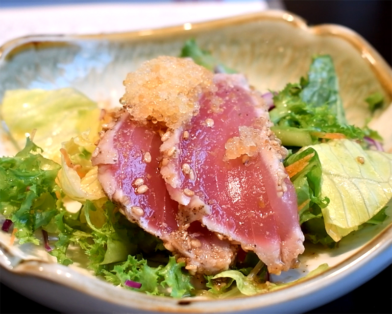 겉을 구워 익힌 참치 타다키입니다.