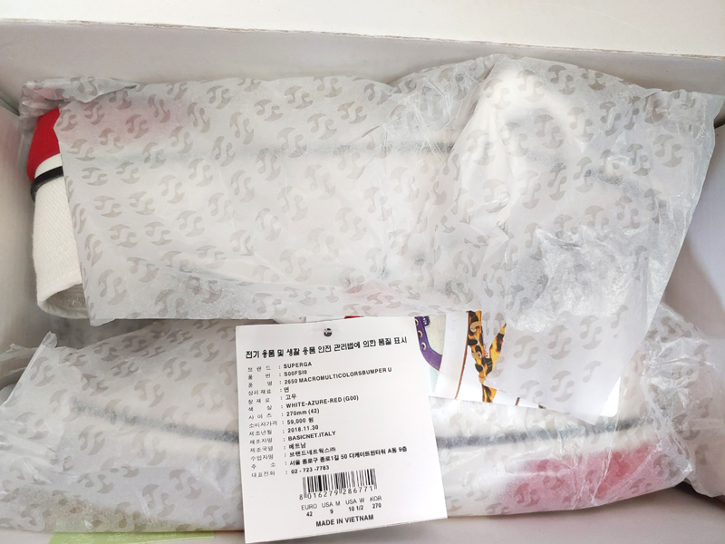 수페르가 로고가 박힌 습자지에 고이고이 싸여 있네요.
