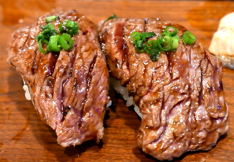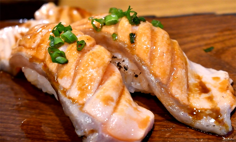 초밥 재료를 적당히 살짝 구워 밥위에 얹은 초밥입니다.