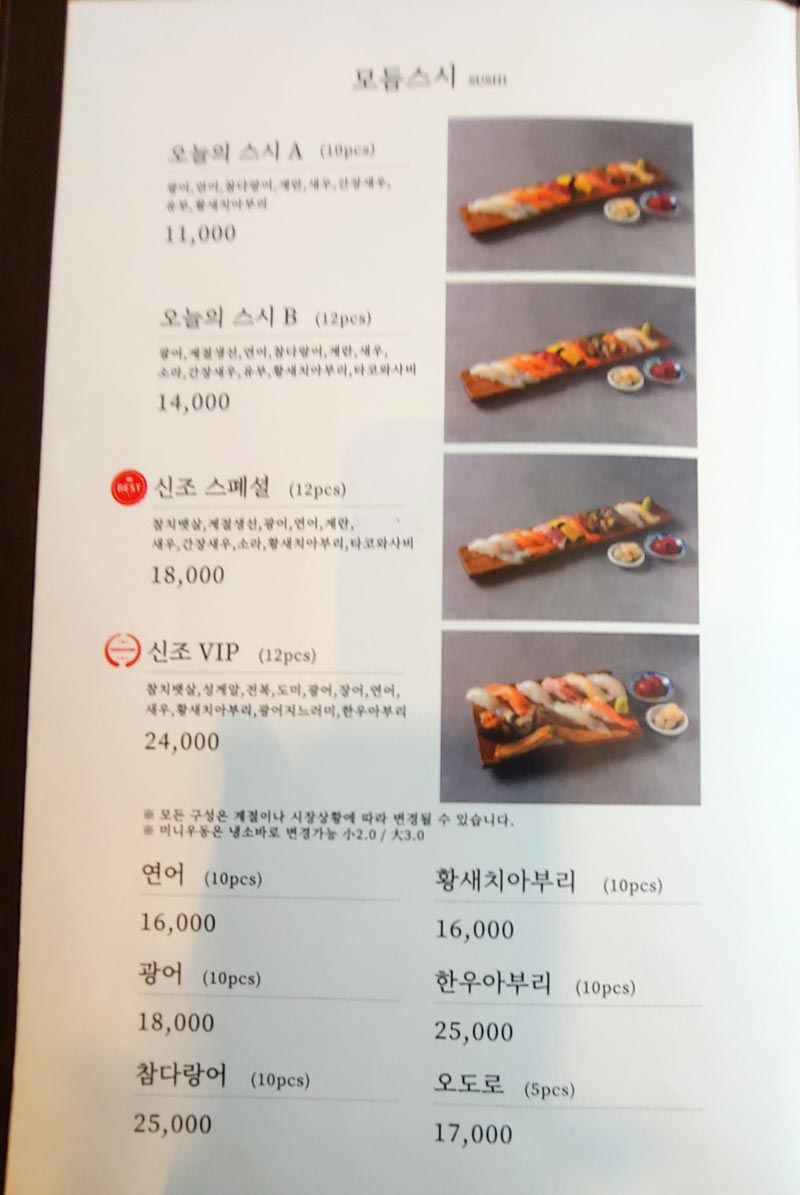 스시신조의 셰프는 일본 유학과 국내 유명 호텔 근무도 하였다고 합니다.
