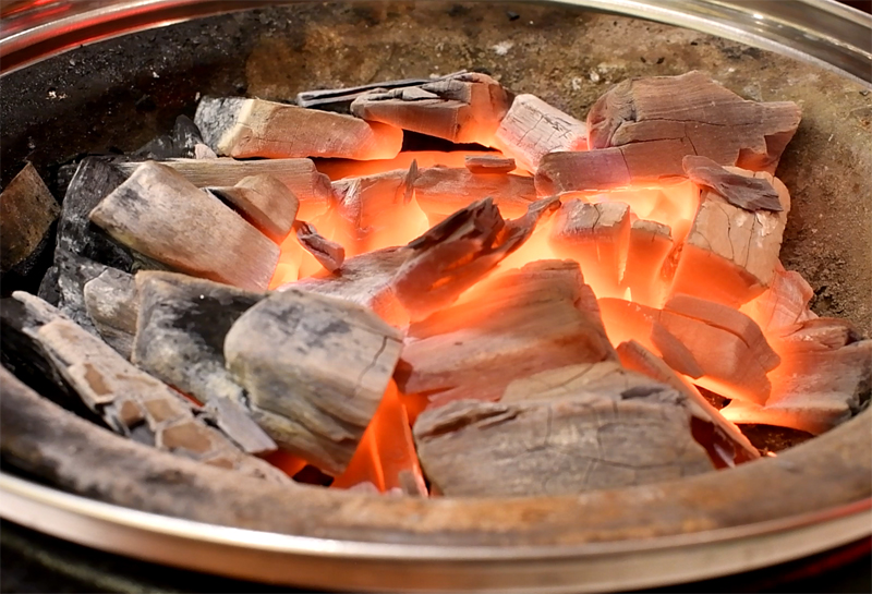 질 좋아보이는 숯불이 얹어지고요. 아아... 이 한여름에 느끼는 따듯함이라니...
