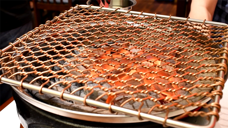 구리로 짜여진 석쇠가 얹어집니다. 뭔가 고급져 보이는 이 느낌적인 느낌!