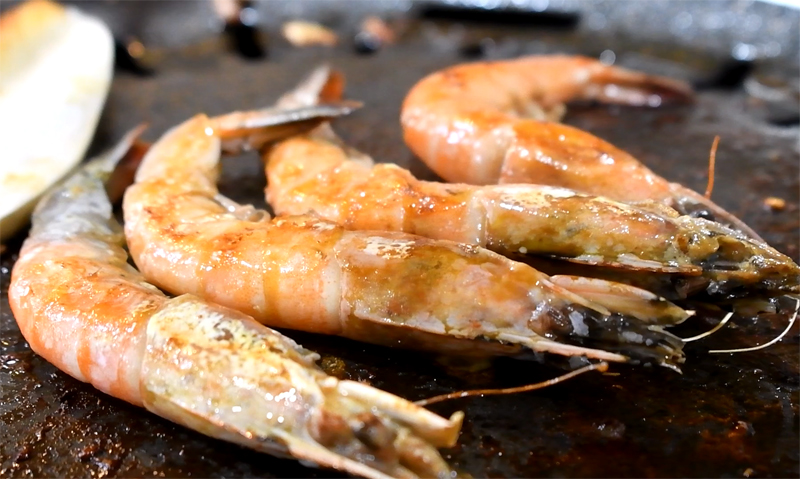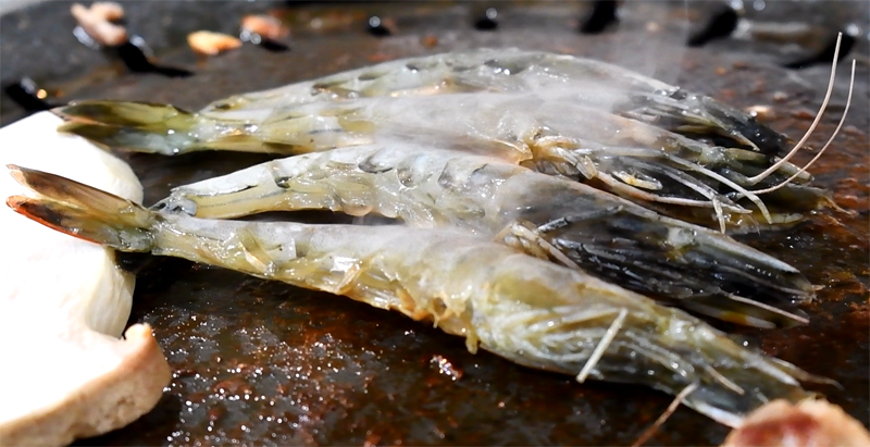 이미 오리 기름이 발라져 튀김 비슷하게 구워진 새우입니다.