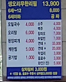 메뉴판을 따로 찍지 못해 위 사진의 메뉴판을 확대해보았습니다. ㅎㅎㅎㅎ