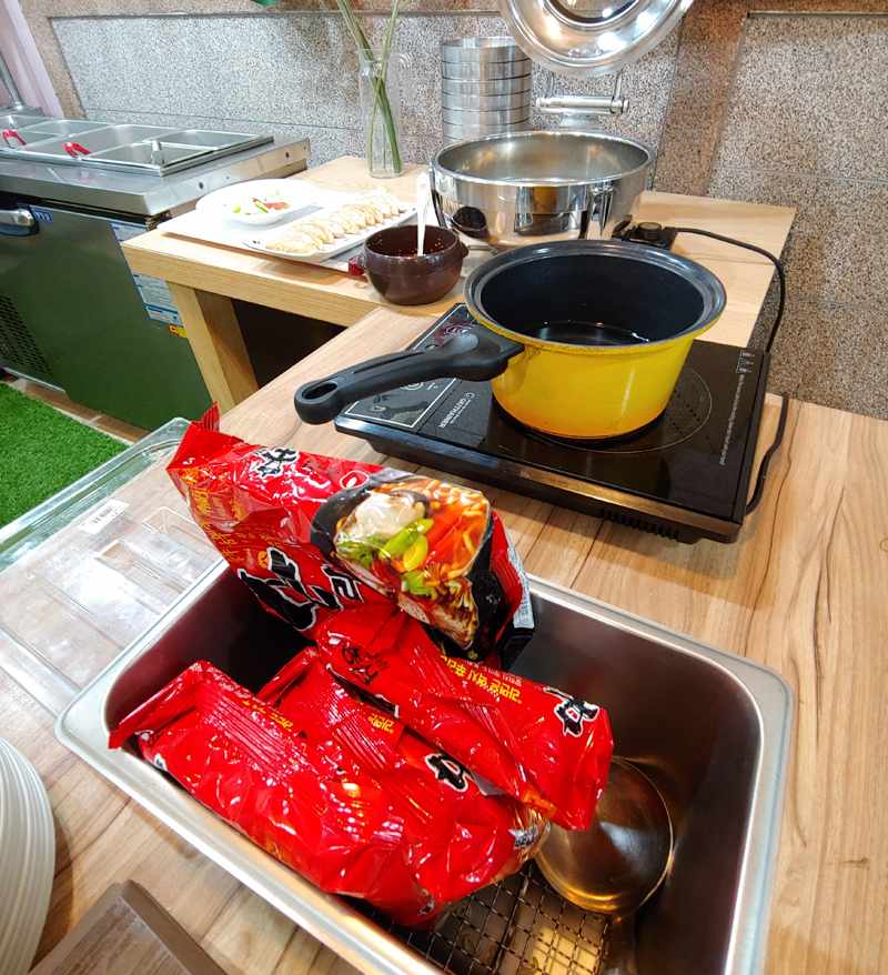 한쪽엔 이렇게 라면을 직접 끓여 먹을 수 있는 곳이 있는데요...