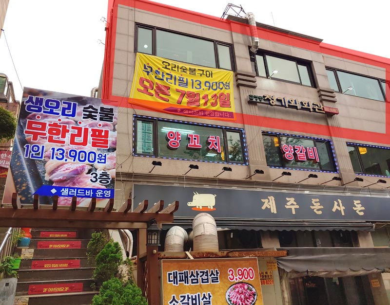 숯불구이 오리고기 청기와회관은 좌측에 있는 계단을 이용 3층엘 가야합니다.