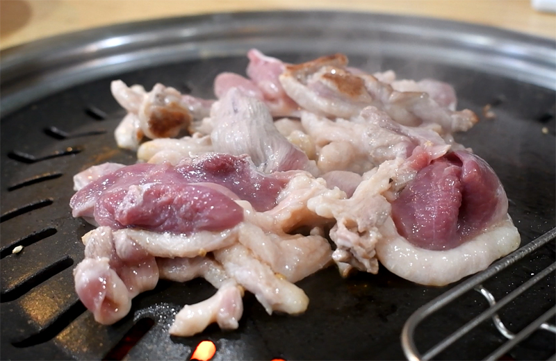 먼저 양념이 아닌 '생' 오리고기를 구워봐야죠.