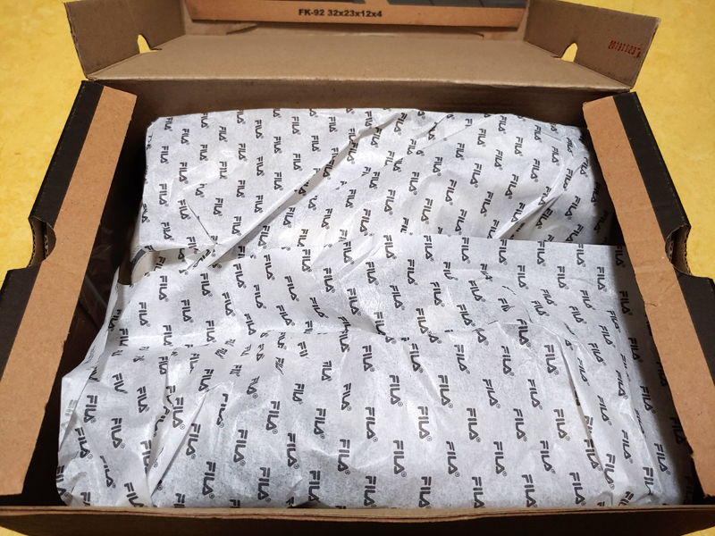 뚜겅을 열어보면, FILA 로고가 박힌 습자지로 싸여 있구요.