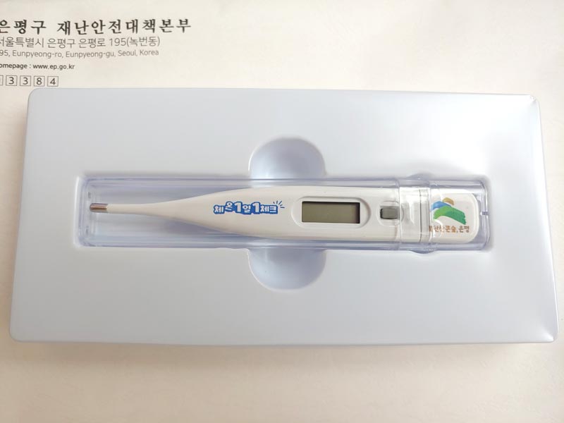 봉투를 열어보니 디지털 체온계가 있는데... 예전에 사서 집에서 쓰던 체온계가 이렇게 생겼던 것 같은데...