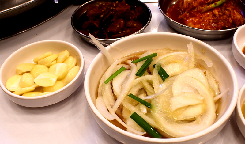 고기 먹는데 반찬을 뭐 많이 필요없지요.