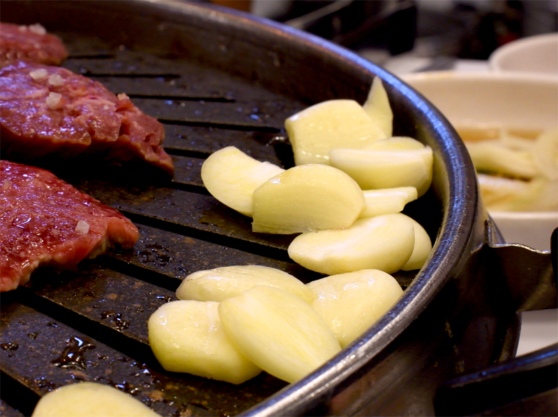 마늘도 불판에 부어 구워먹습니다.