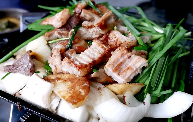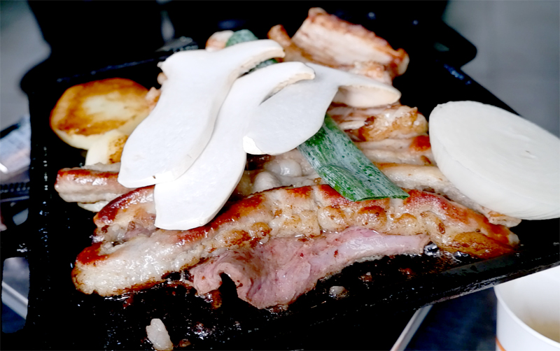아까도 말씀드렸듯이 갈라서 충분히 지져내어 구워서 보다 덜 기름진 쫀득한 맛을 볼 수가 있네요.