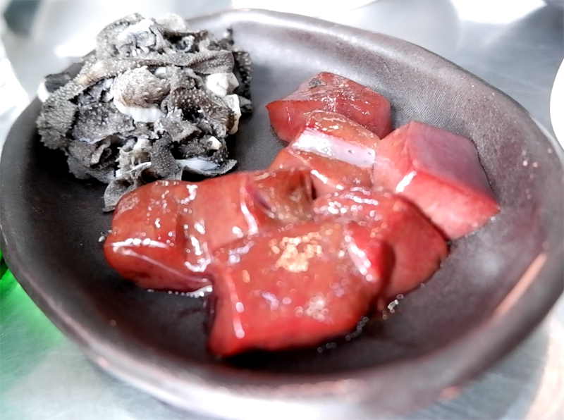 염통이 제일 빨리 익어 먼저 먹기 시작합니다.
