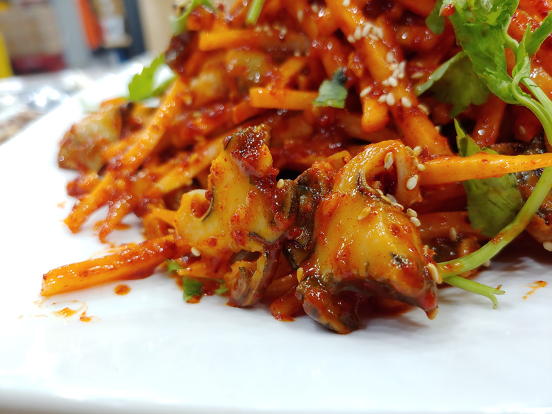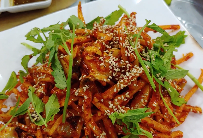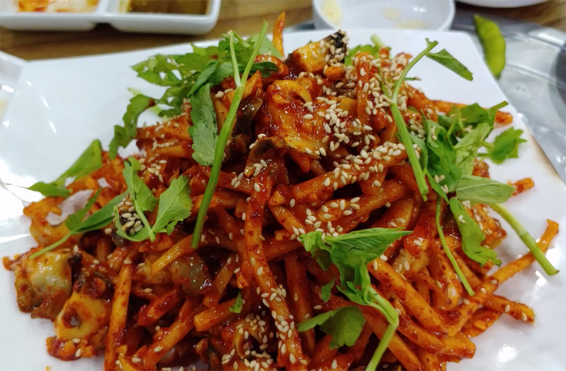 아삭아삭한 채소에 소라숙회가 새콤달콤 맛나게 버무려져 있습니다.