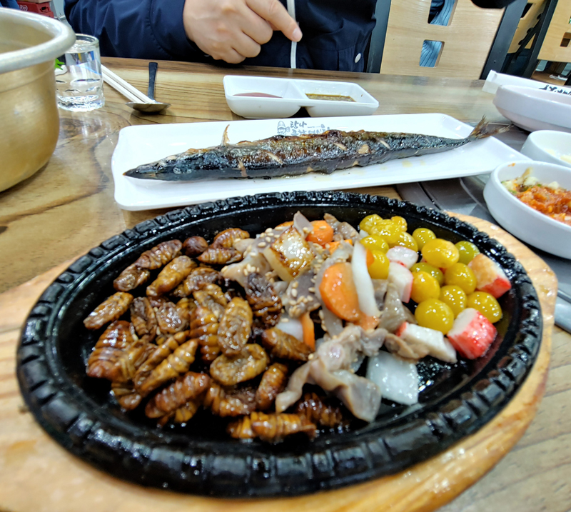 그리고 나중엔 번데기에 닭똥집(근위), 은행 구이에다가 꽁치구이까지...