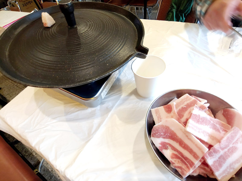 그렇지요, 냉동삼겹살은 솥뚜껑이 제맛이지요.