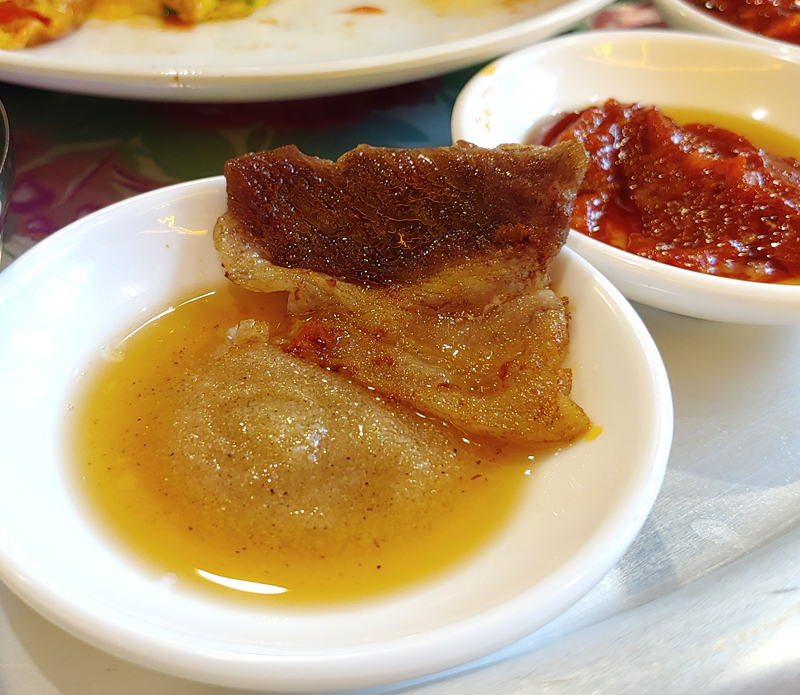 두툼한 두께의 돼지껍질이 식감도 말캉말캉하니 맛있게 먹었습니다.
