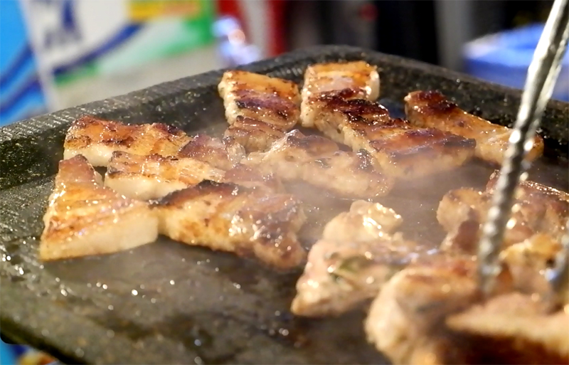 삼겹살은 살코기에서 약간 뻣뻣함을 느꼈지만,